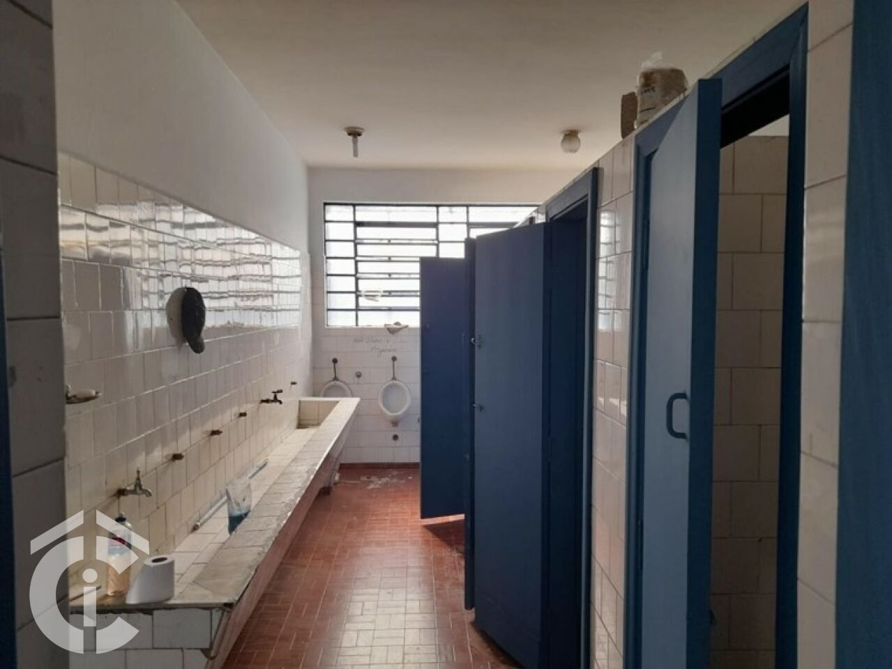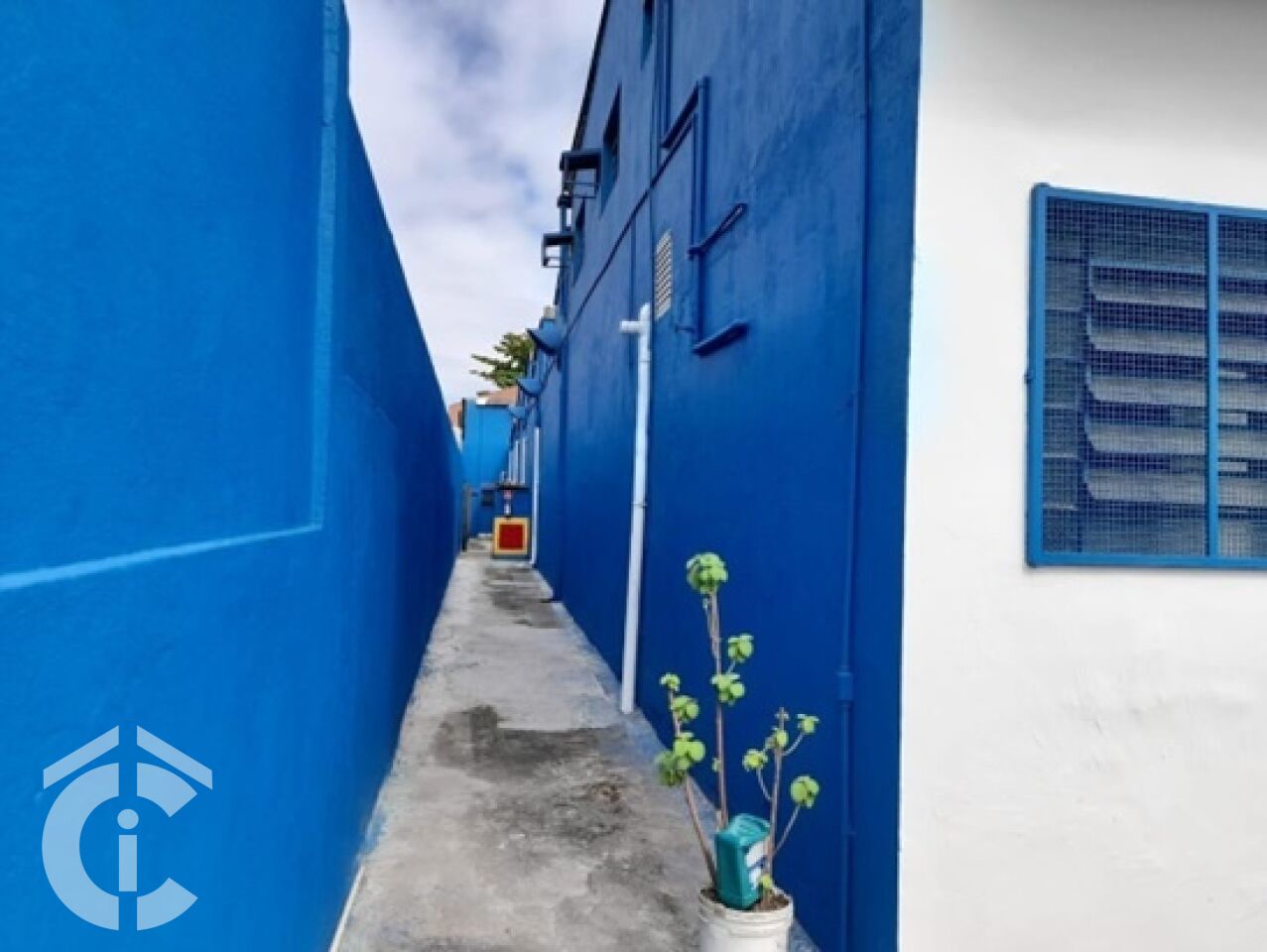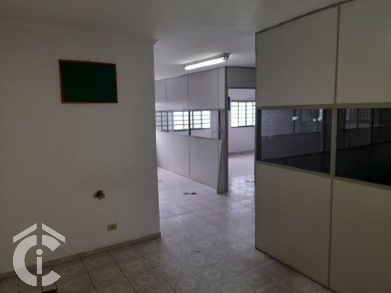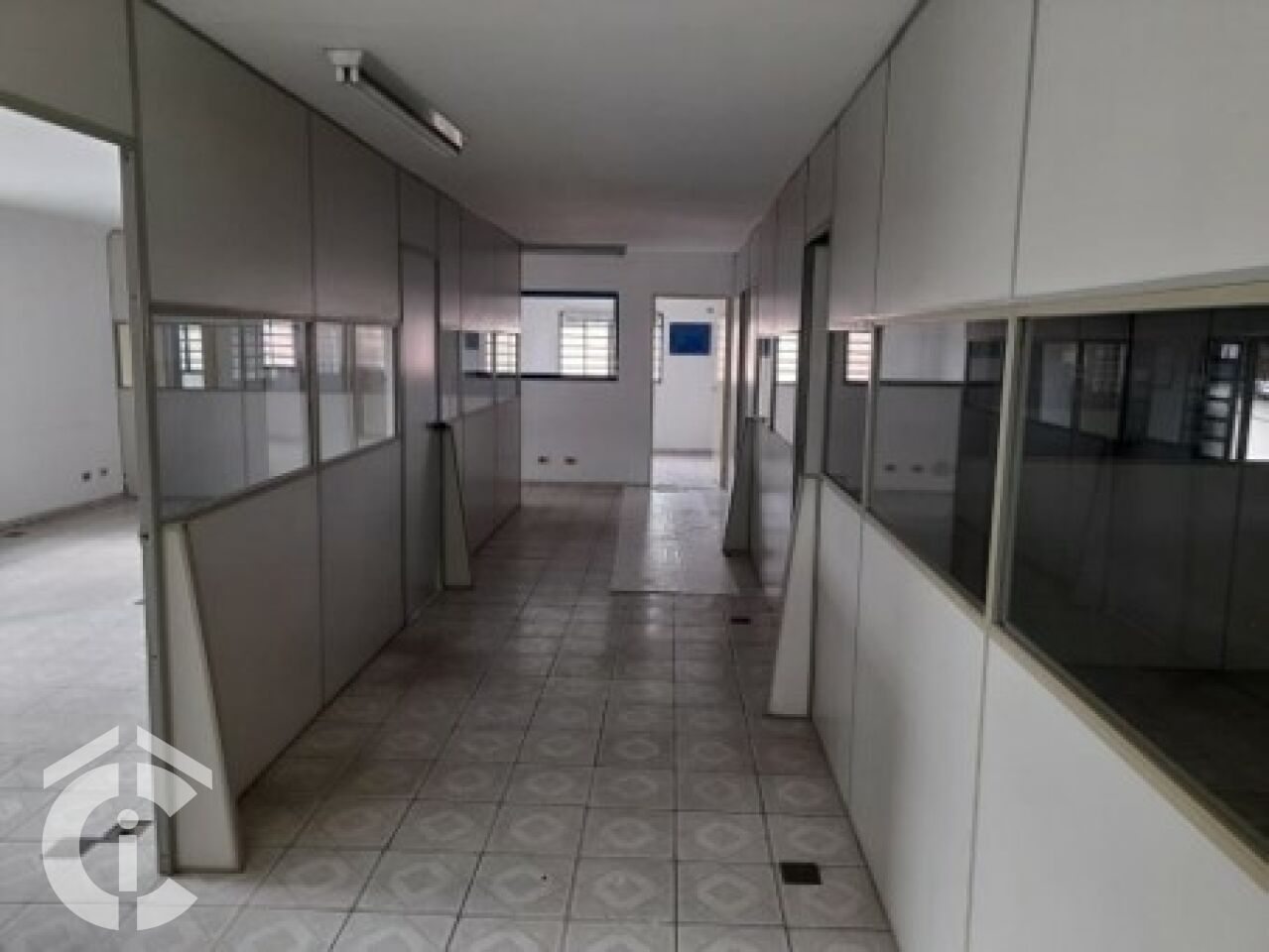 São 20 m só de frente, entrada para caminhão, pé direito alto, corredor lateral, 5 salas para administrativo, 4 banheiros.