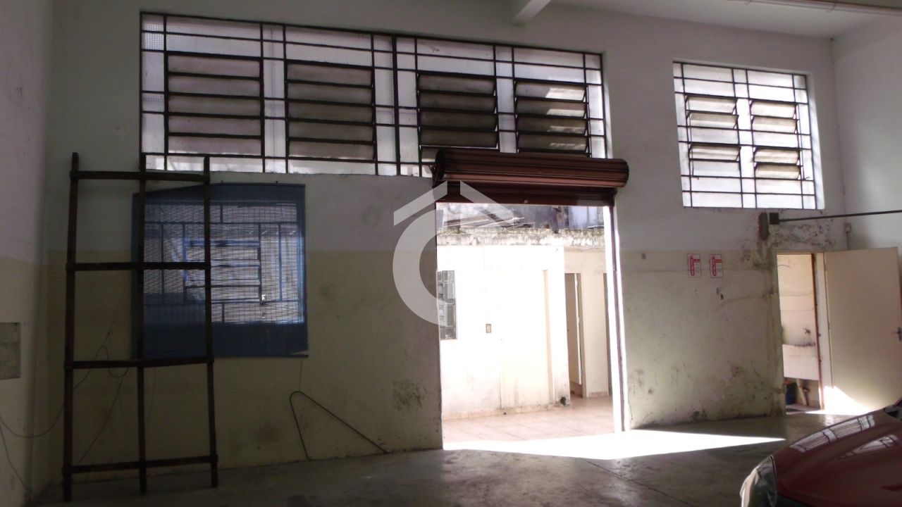 Galpão comercial com vão livre no salão, pé direito de 5 m, área de fundos com copa e banheiros.