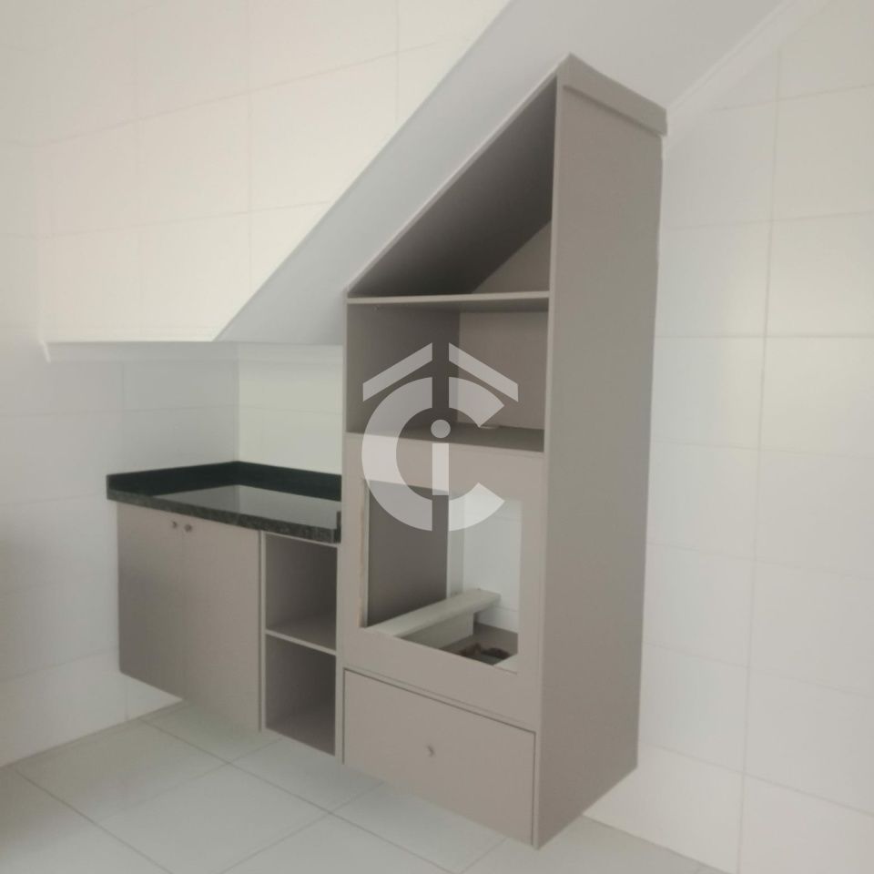 No piso térreo, temos um lavabo, perfeito para as visitas, além de uma sala com jardim de inverno, trazendo a natureza para dentro de casa. A cozinha, planejada e funcional, conta com ótimos armários, facilitando a organização dos utensílios domésticos. A lavanderia, equipada com churrasqueira, é um espaço versátil e ideal para momentos de lazer em família e amigos.